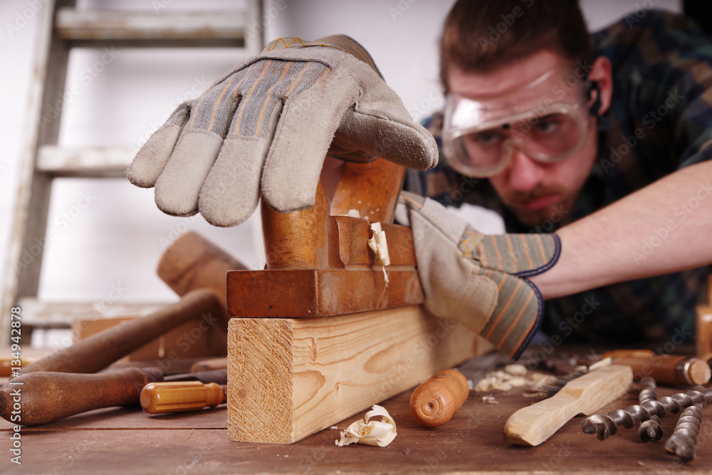 A young female warehouse worker checks and counting cardboard boxes in the warehouse using a laptop