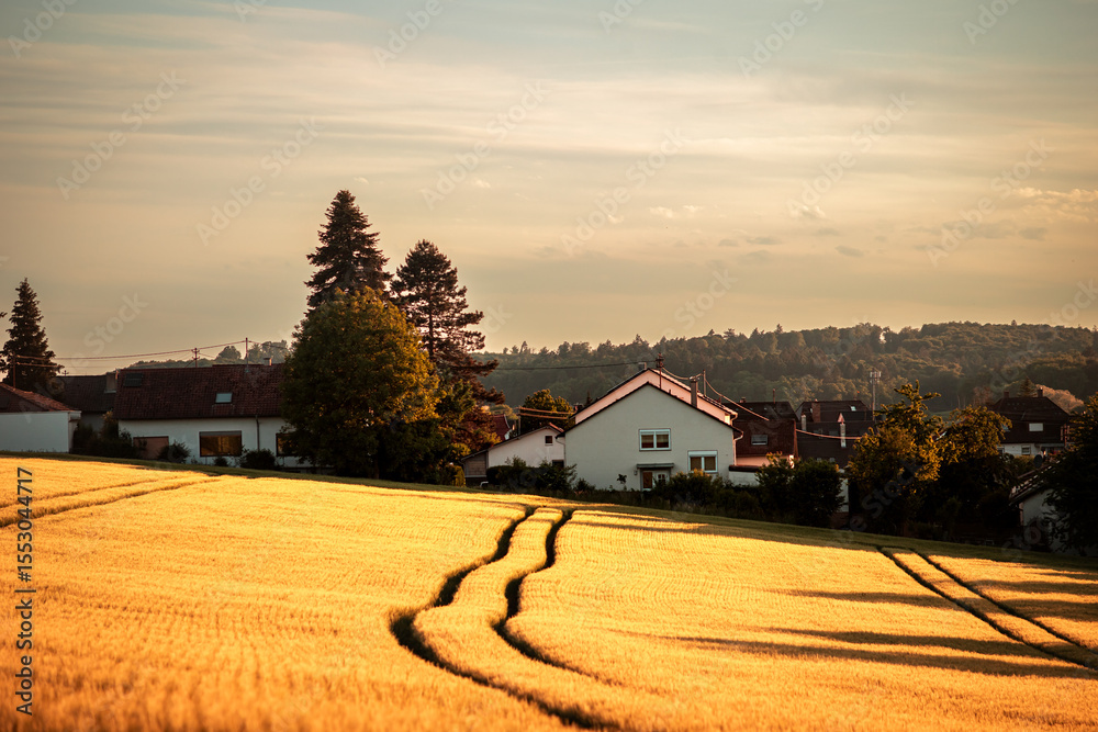 Golden Hour Over Rolling Fields in Bretten, Baden-Württemberg, Germany