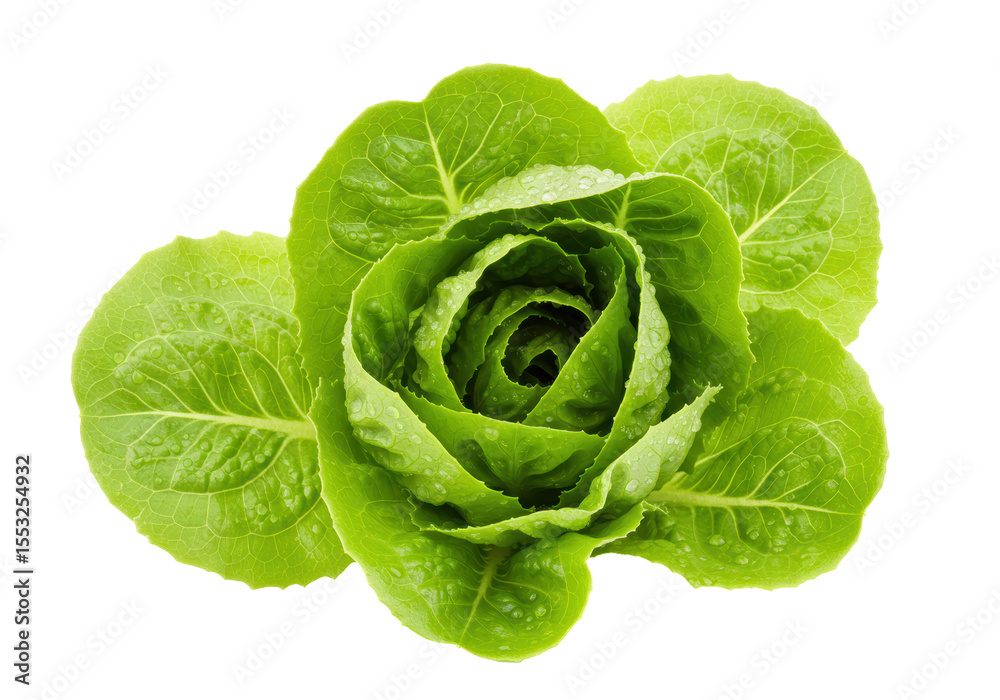 Isolated Fresh Green Cos Lettuce Head with Water Droplets