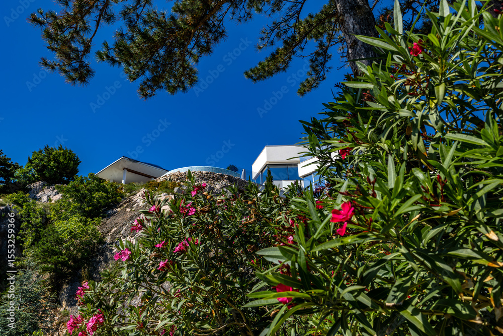 Wild nature on the island of KRK, picturesque landscape, comfortable and expensive apartments by the sea Croatia