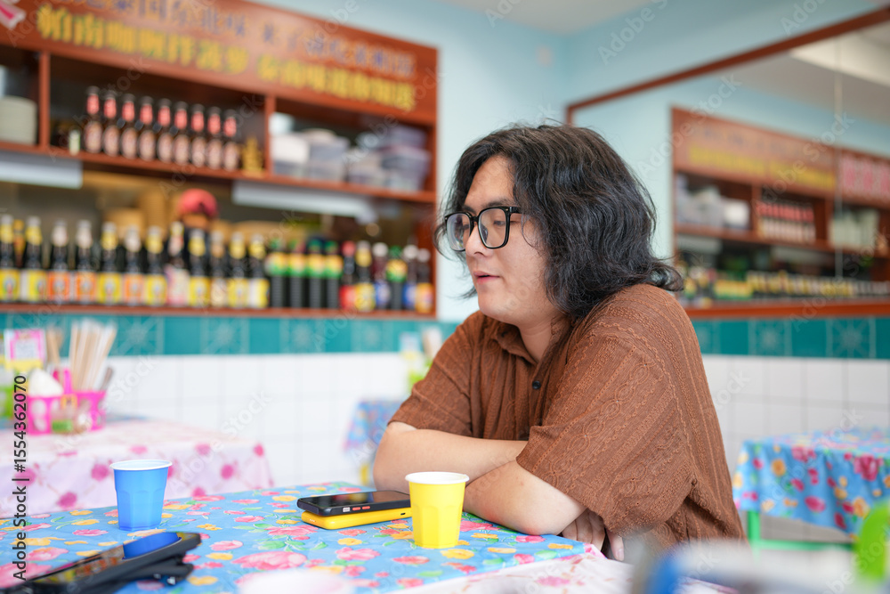 Folgende Fotos können Ihr Interesse wecken: chinese, mann, frühe, 20s, glas, thai, warten