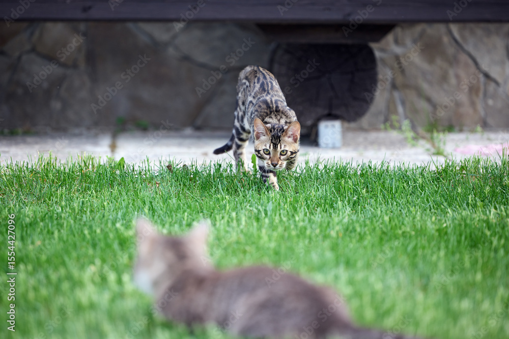 Domestic Cat and Bengal Kitten in Tense First Encounter