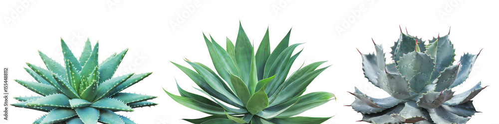 Set of Agave, Cactus, Desert Plants Isolated on White Background with Clipping Path