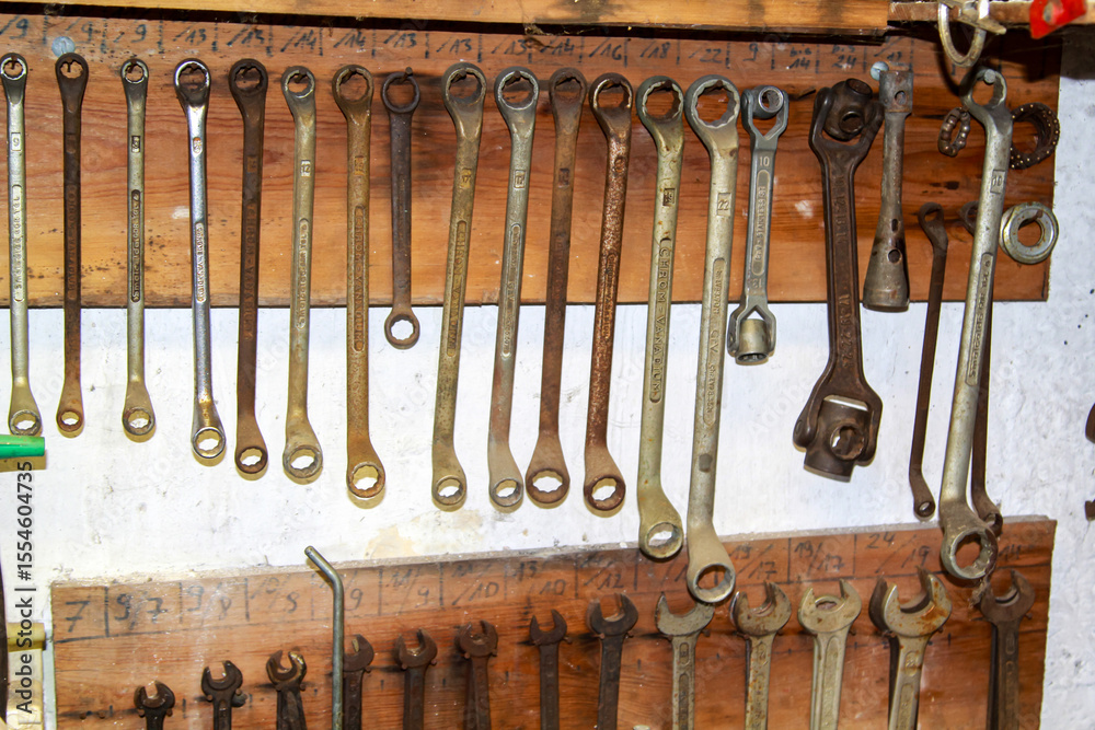 Jede Menge Ringschlüssel sortiert aufgehängt.