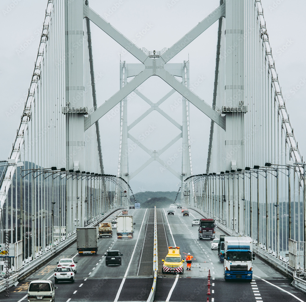 Great Naruto Bridge with gray sky background in cloudy day at Tokushima