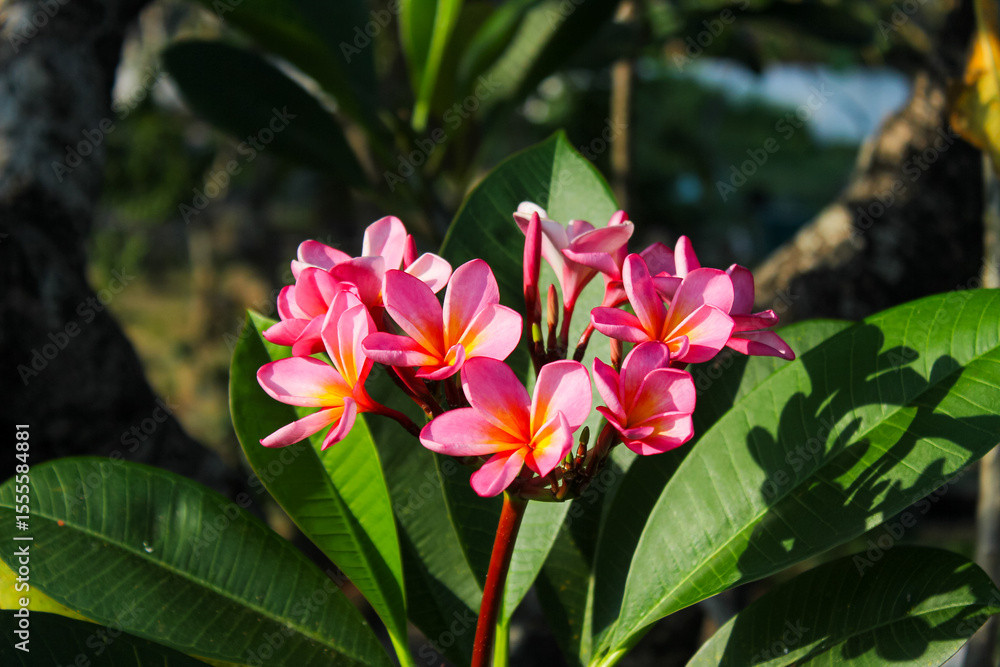 Pink frangipani flowers with blurred background