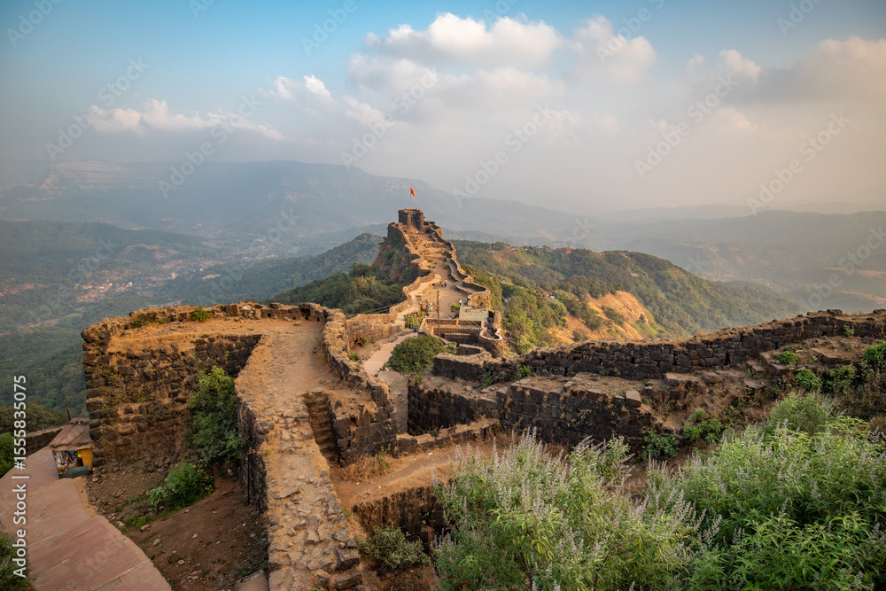 Pratapgad fort situated in Sahyadri mountain range in Mahabaleshwar, Maharashtra, India