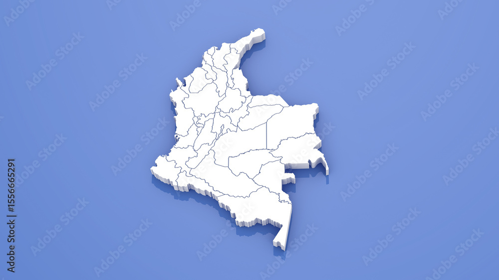 Colombia Map with State Borders on Blue Background. 3D Render.