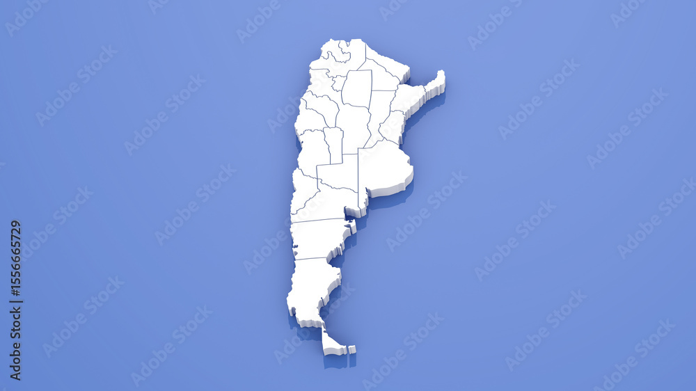 Argentina Map with State Borders on Blue Background. 3D Render.