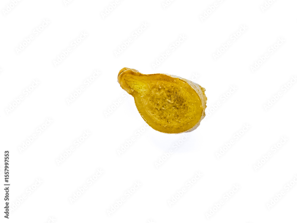 Ginger slices isolated on white background.