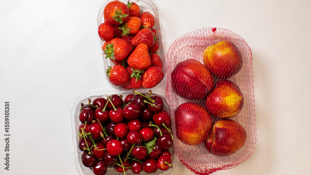 Juicy nectarines, cherries, and strawberries evoke midsummer solstice feasts, capturing vibrant harvest freshness and Vesak's sweet offerings