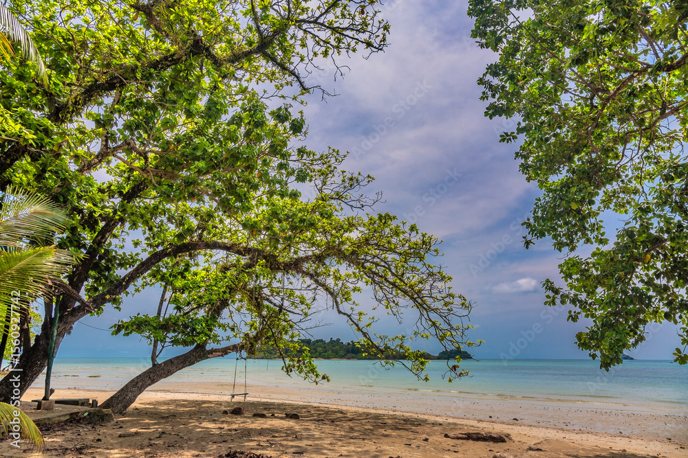 Trees on Kai Bae Beach under a gloomy dramatic sky