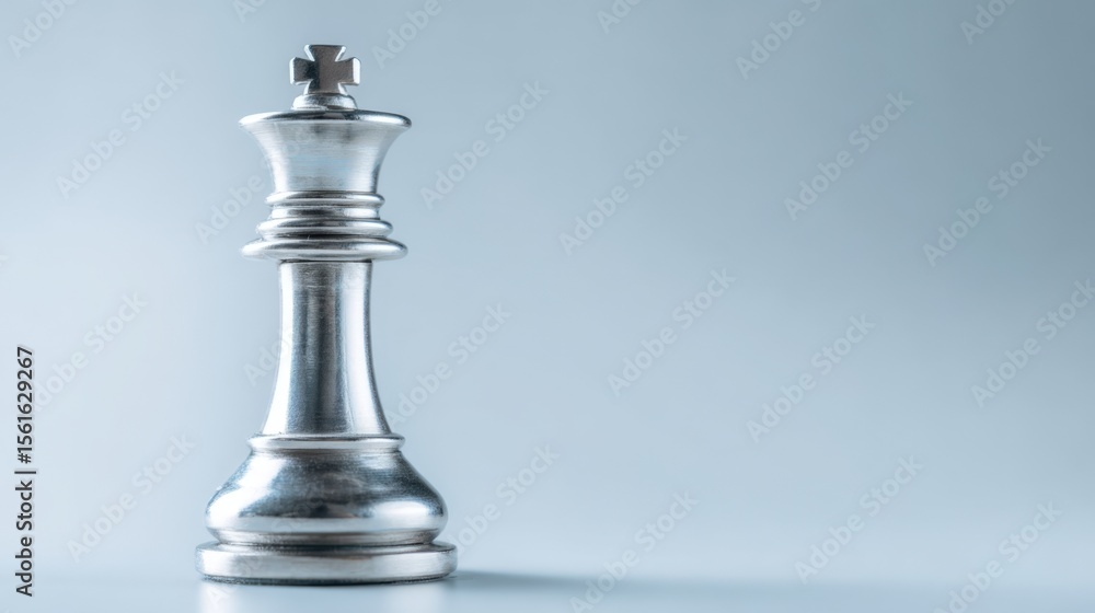 Silver king chess piece isolated on a light blue background in close-up detail.