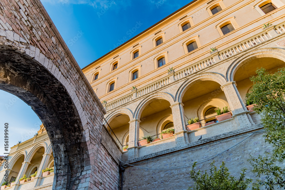 Panorama of Assisi, home of St. Francis, in the umbria region of Italy famous for the pilgrimage cathedral of the popes of all ages
