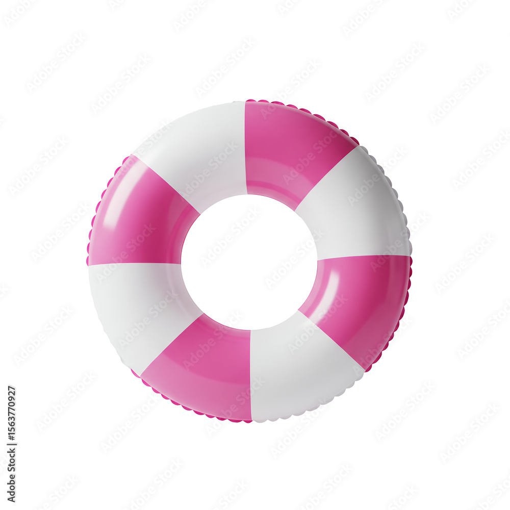 Pink and White Striped Inflatable Ring Float for Summer Beach Pool Activities png isolated on transparent background