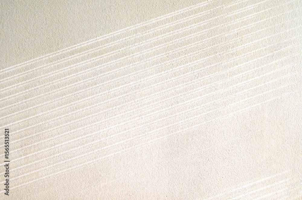 Diagonal shadows from window blinds fall across a light wall creating soft abstract lines and a quiet atmosphere