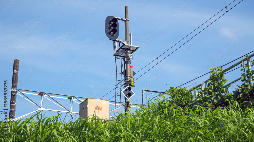 夏草と鉄道信号機