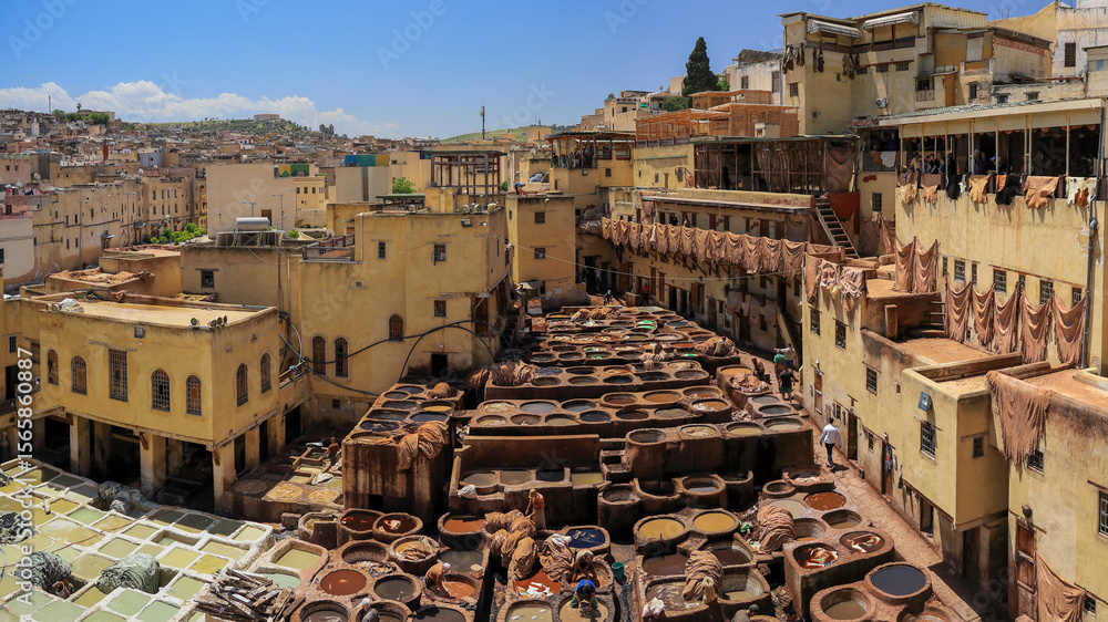 モロッコ フェズ タンネリショワラ なめし革染色作業場の風景