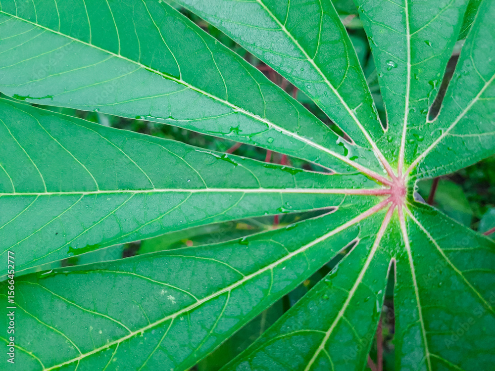 Cassava Leaf Close Up Top View with Natural Green Texture