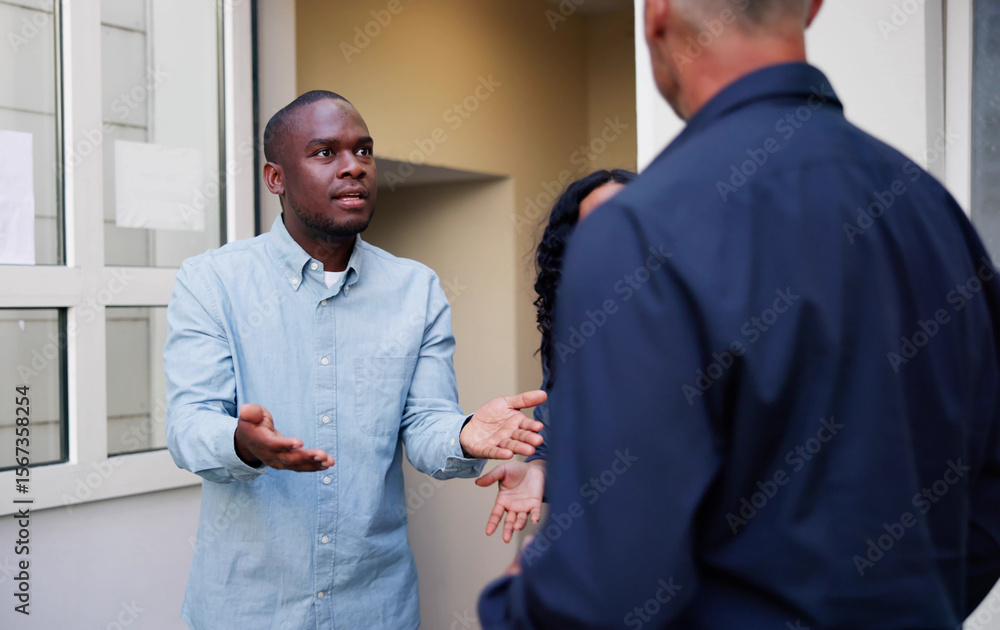 Neighbors Quarreling: Young Latino Couple Arguing Outside Apartment