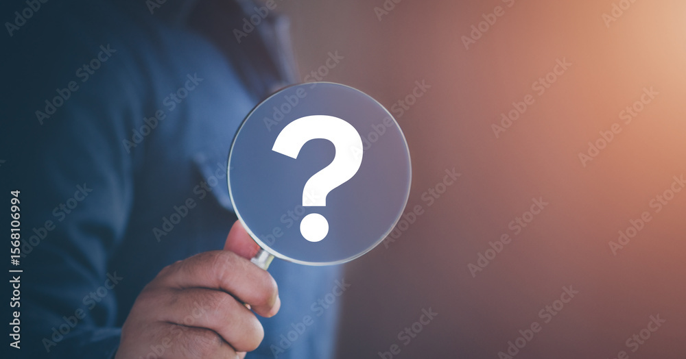 International ask a question day concept, Magnifying glass focused on question mark, Answer, Q&A, Communication and Brainstorming