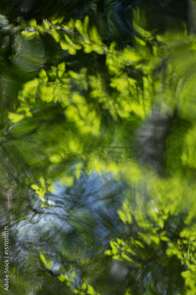Bright green leaves shimmer on the water’s surface, creating a captivating and serene visual dance