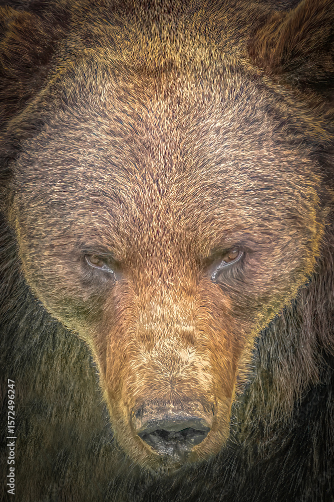 Intense Close Up Portrait of a Powerful Brown Bear Face