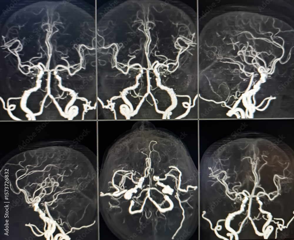 MRI of brain and MRA. CT Angiogram Brain showing anterior communicatting artery small dilatation, saccular aneurism. Hypoplasia of A1 segment. Cerebral atrophy.
