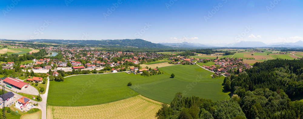 Panorama-Luftbild: Stadt Laufen, Bayern, an der Grenze zu Österreich