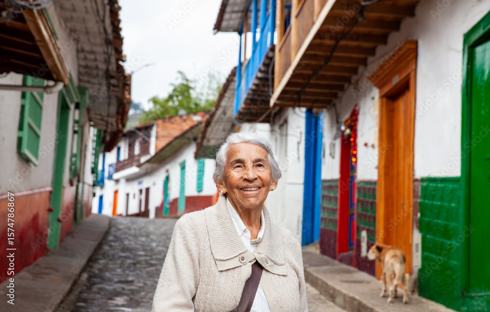 Senior woman at the beautiful colonial town of Concepcion located in the department of Antioquia in Colombia.