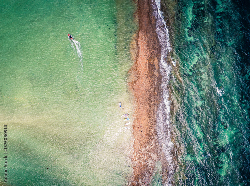 Overhead view of boats at Carneiros beach (Praia dos Carneiros). Pernambuco, Brazil.