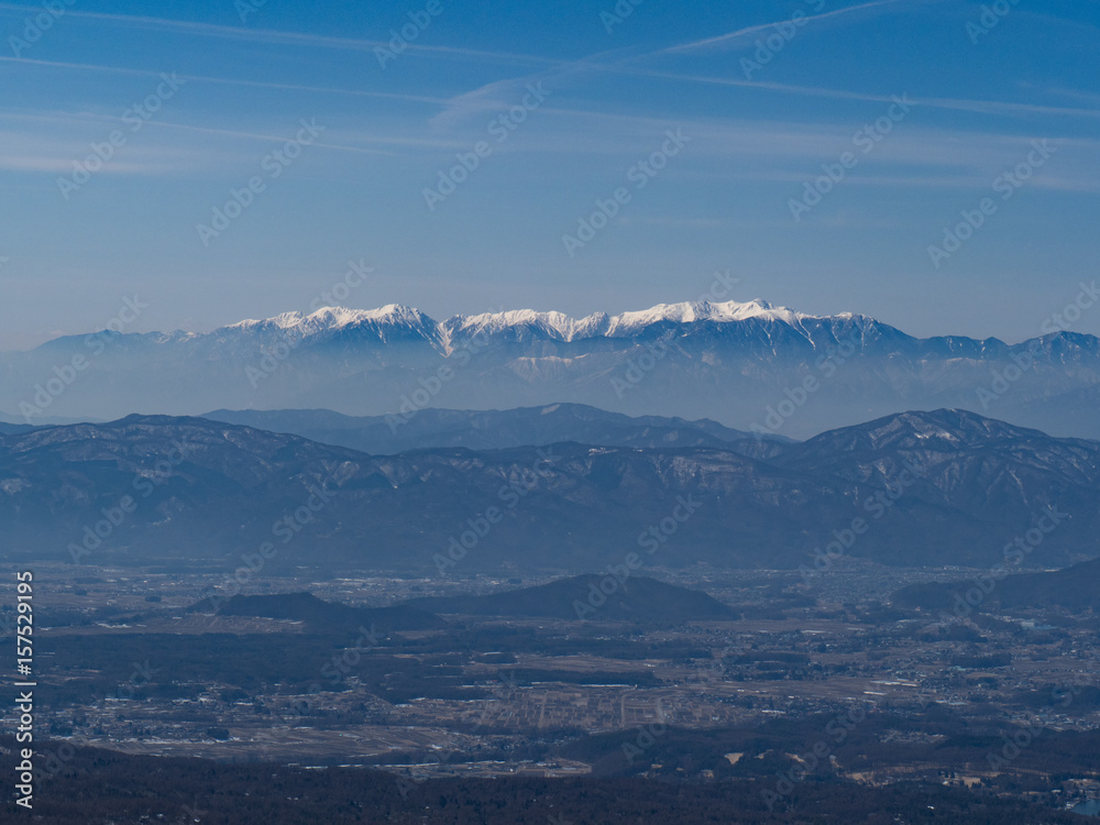 ピラタス蓼科から望む中央アルプス連峰 Alps mountains in Nagano prefecture with snow on top view
