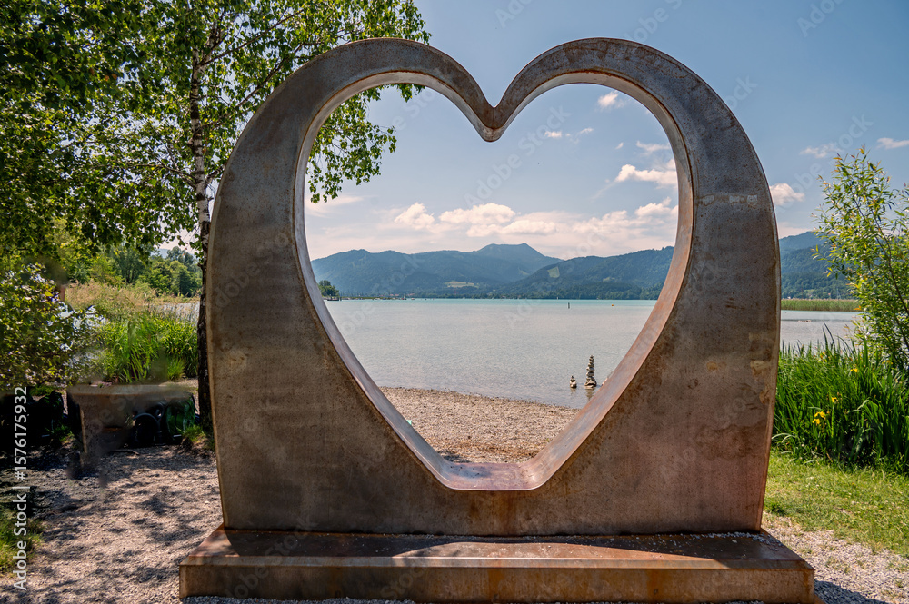 Herzskulptur mit Blick auf den Tegernsee