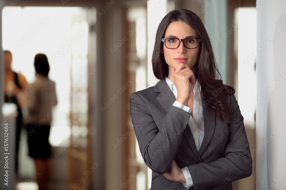 Legal defense attorney, woman business leader, ceo executive in thought at the company office location