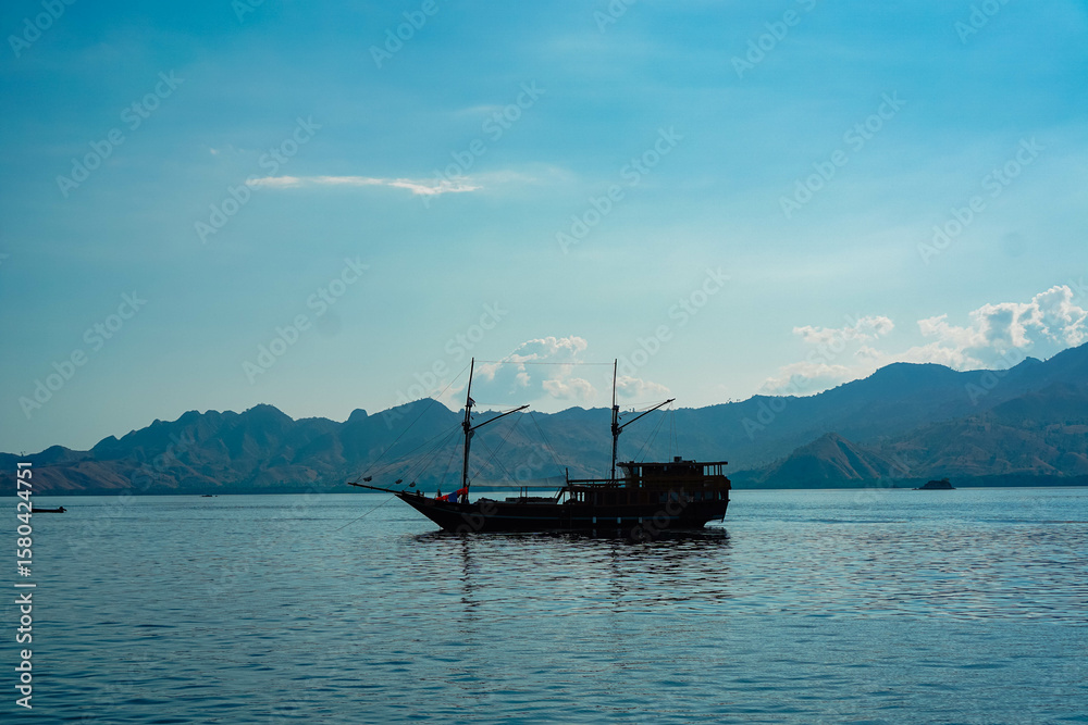 Traditional Pinisi Ship Sailing in the Open Sea