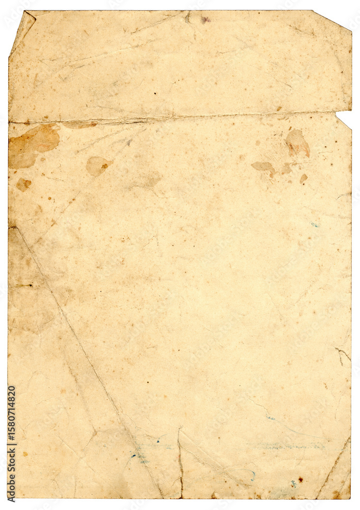Beschädigtes Papierstück, alt mit Flecken, Rissen und Knicken für Overlay-Pack oder Vintage-Layout