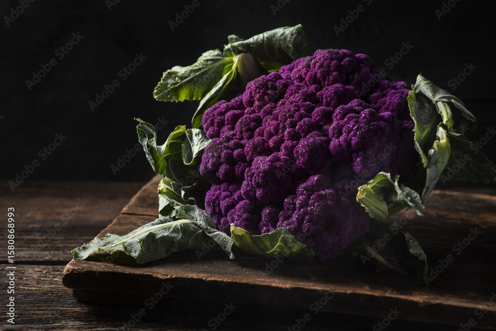 Purple Cauliflower in rustic setting