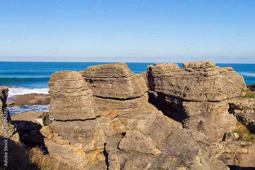 Landscape and morphology of the cliff coast in the municipality of Galizano in Cantabria, Spain