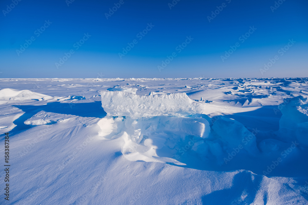 Camp Barneo at the north pole snow plain snow cube pattern snowflakes lines close-up