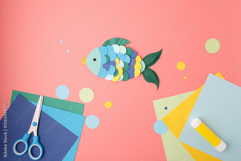 Bright stationery collection with scissors and glue ideal for toy packaging, e-learning materials, hobby websites, craft workshops, and child product advertising in educational industry