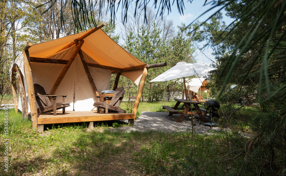 Cozy Glamping Tent in Forest with Picnic Area and Barbecue Grill
