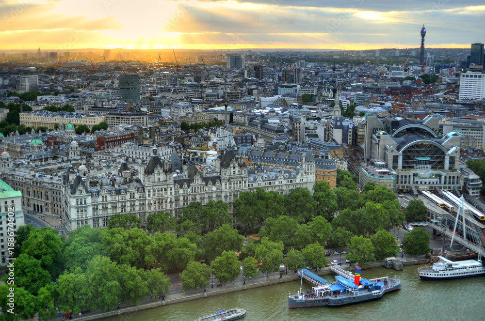 London Skyline landscape with Big Ben, Palace of Westminster, London Eye, Westminster Bridge, River Thames, London, England, UK...