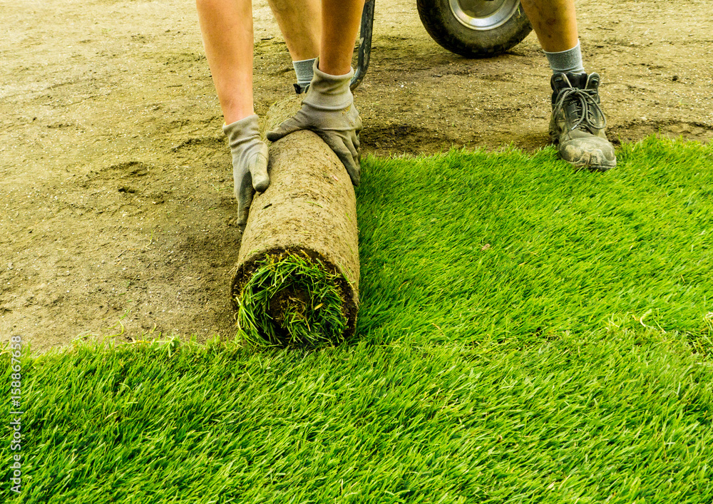 Rollrasen wird ausgelegt