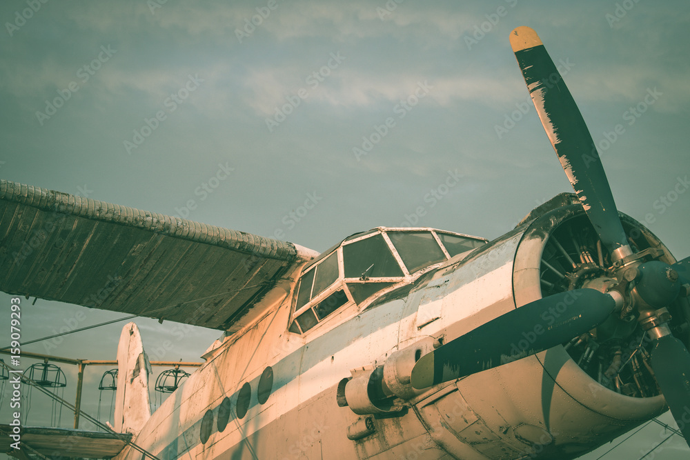 The cockpit of the old plane. Abandoned aircraft