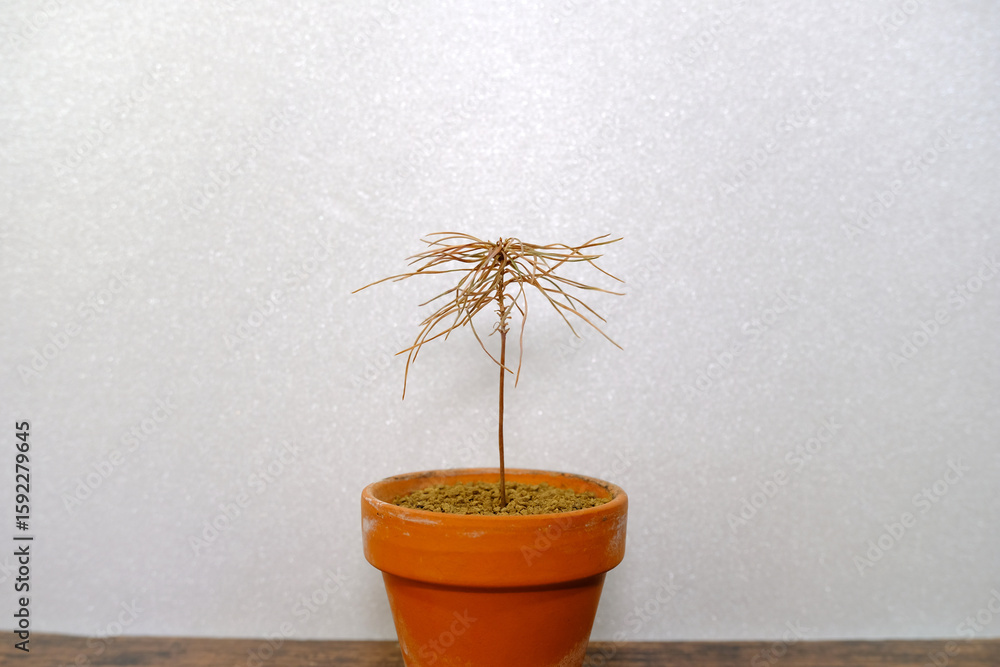 一本の枯れたミニ盆栽 赤松 豆盆栽 植物