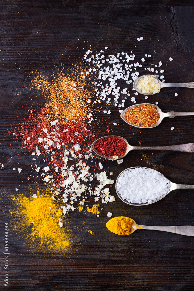 Various asian spices in spoons