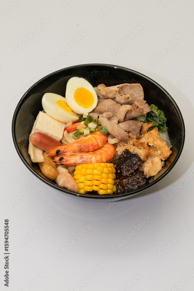 Folgende Fotos können Ihr Interesse wecken: meeresfrüchte, nudel, suppe, shrimps, ei, corn, tofu