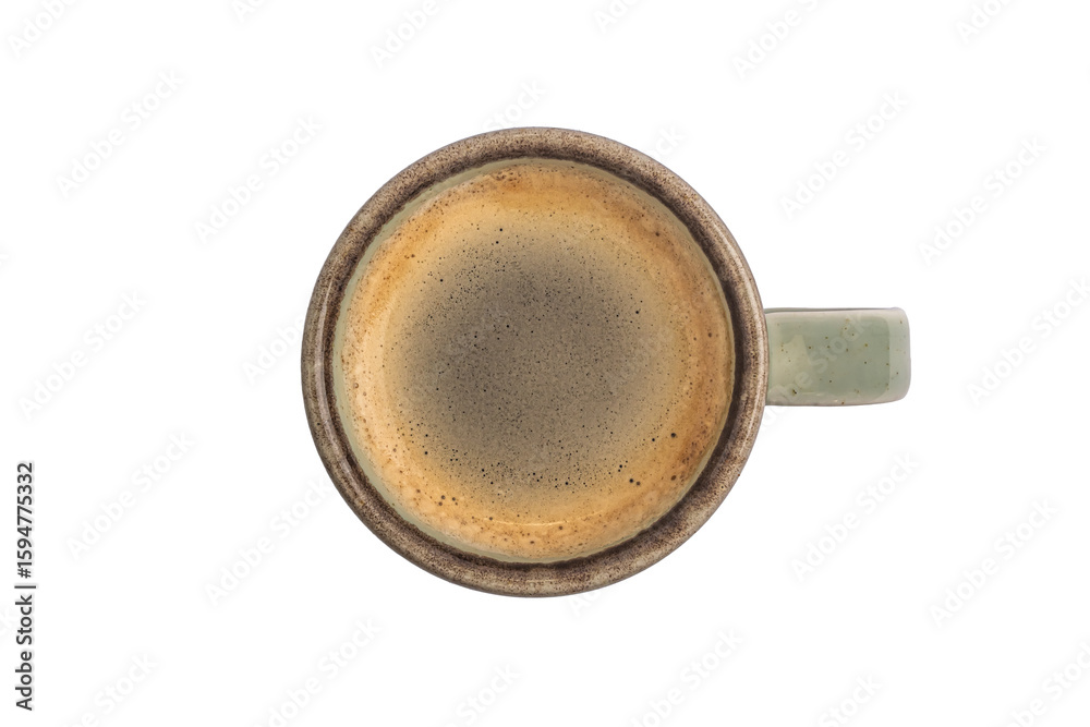 cup of espresso coffee isolated on white background, top view