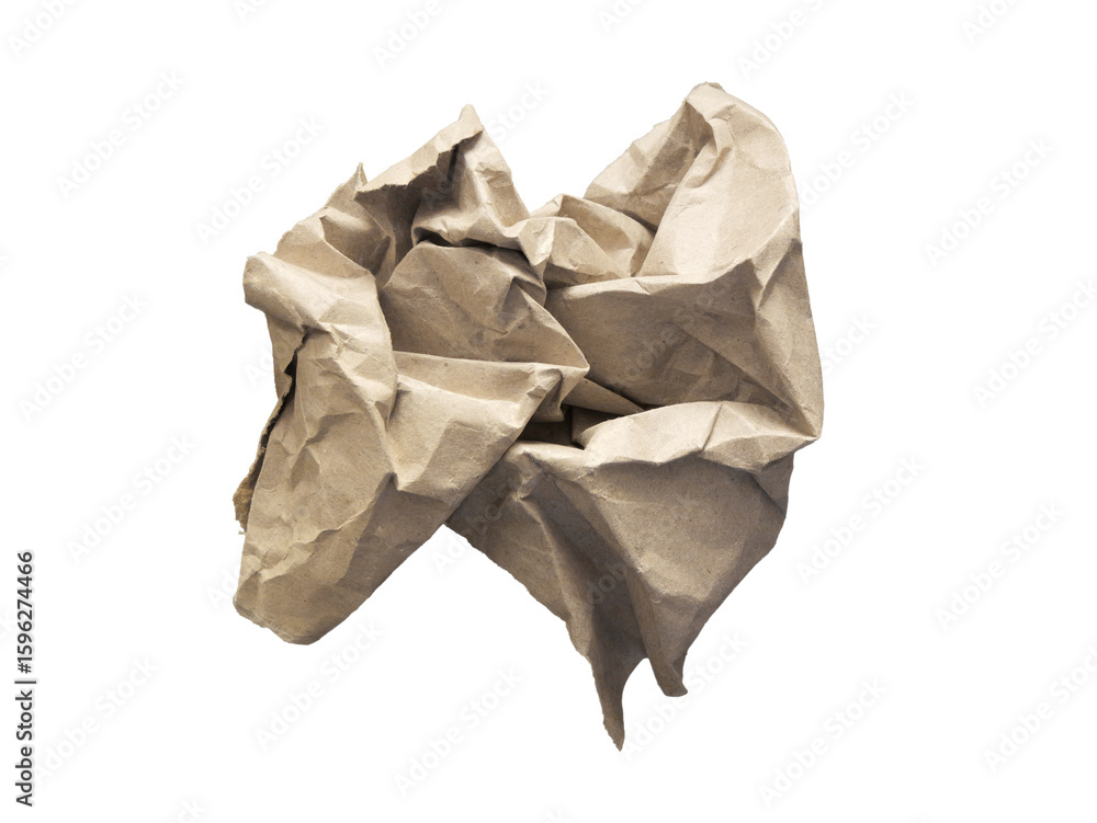 Wrinkled kraft paper sheet. Crumpled rough brown paper with alpha channel. Can be used as elements for design projects.