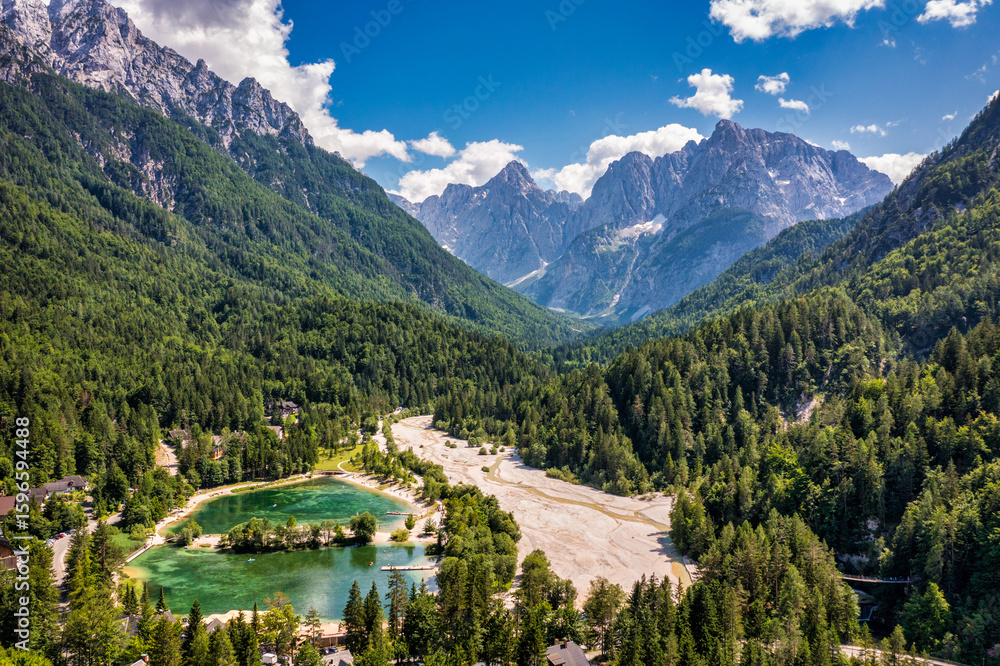 Jasna lake with beautiful mountains. Nature scenery in Triglav national park. Location: Triglav national park. Kranjska Gora, Slovenia, Europe. Mountain lake Jasna in Krajsnka Gora, Slovenia.